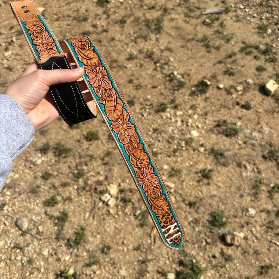 Because every belt is made specifically for you, please describe your design in as much detail as possible when placing your order. Include information such as colors, tooling style, or any other elements you would like incorporated.